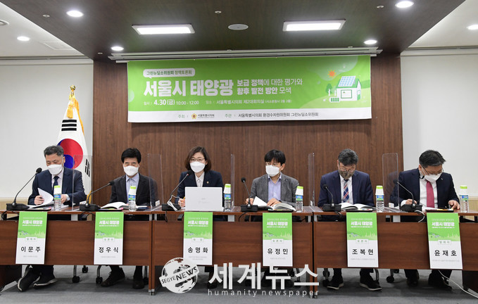 [세계뉴스 정서영 기자] 서울시의회 환경수자원위원회 그린뉴딜소위원회(위원장 송명화)는 서울시의회 의원회관 제2대회의실에서 ‘서울시 태양광 보급 정책에 대한 평가와 향후 발전 방안 모색’ 정책토론회를 개최했다.