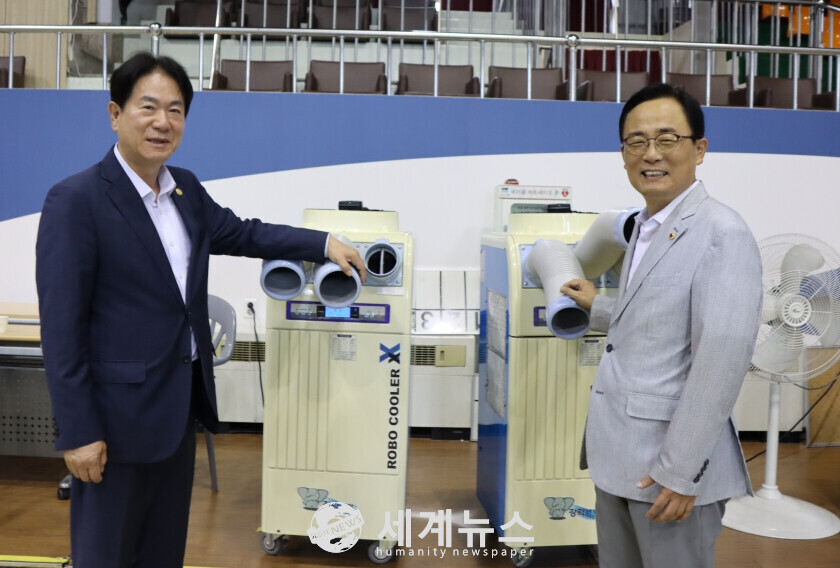 6일 김형재(오른쪽) 의원이 국기원을 방문하여 이동섭(왼쪽) 국기원장과 국기원 내 노후시설을 점검하고 있다.