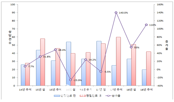명절 전 민원건수 대비 140% 증가, 여름철보다 겨울철에 민원 대폭 증가