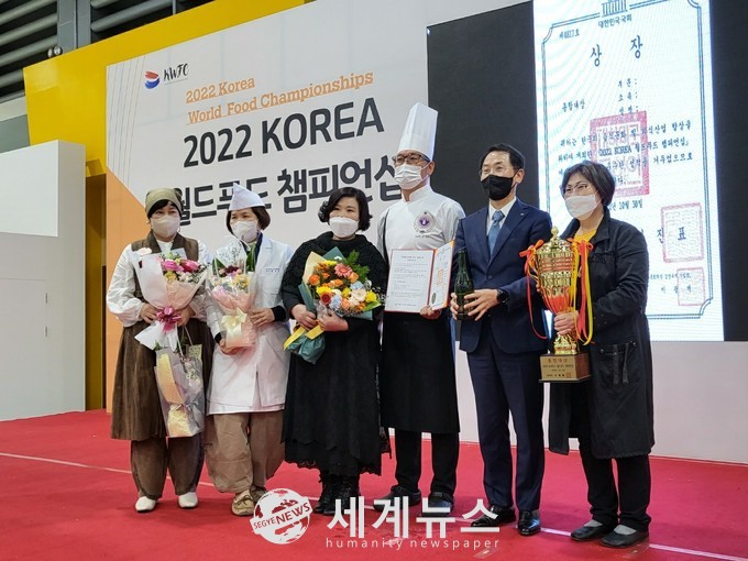 [세계뉴스 양경희 기자] 담양군 곽경자(백세시대발효명가 대표), 강순임(강순임슬로우푸드 대표) 씨가 지난달 28일부터 30일까지 서울 양재동 aT 센터에서 열린 ‘2022년 KOREA 월드푸드챔피언십’ 전시경연(특별전시) 부문에 출전해 영예의 대상인 ‘국회의장상’을 수상했다.