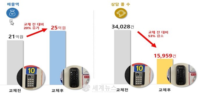 ▲ 잠금 장치 교체 전후 매출액, 상담 콜 수 추이. |