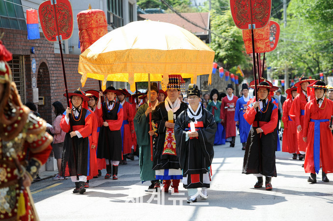 ▲ 선농대제에서 임금 행차 재연모습 (유덕열 동대문구청장) © 세계뉴스 |