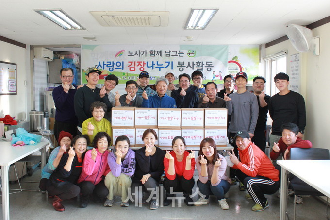 [세계뉴스] 조홍식 기자 = 성동구도시관리공단(이사장 김종수, 이하 공단) 노사가 함께 ‘사랑의 김장 나누기’ 행사를 열고 총 100포기의 김치를 성동장애인종합복지회관에 기증했다.