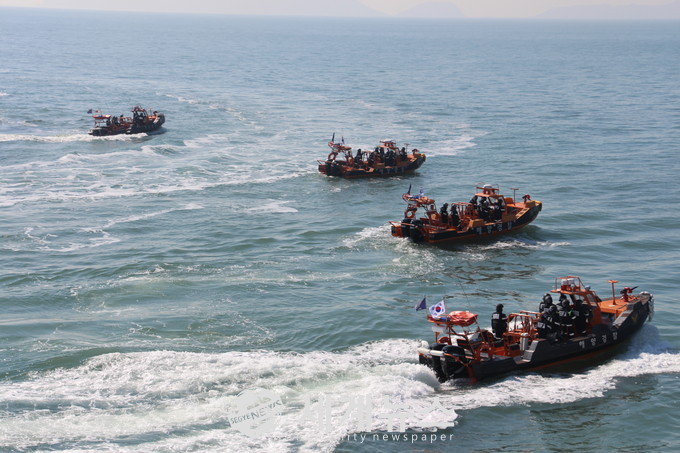 ▲ 팀워크 강화훈련 돌입한 군산해경 사진 |