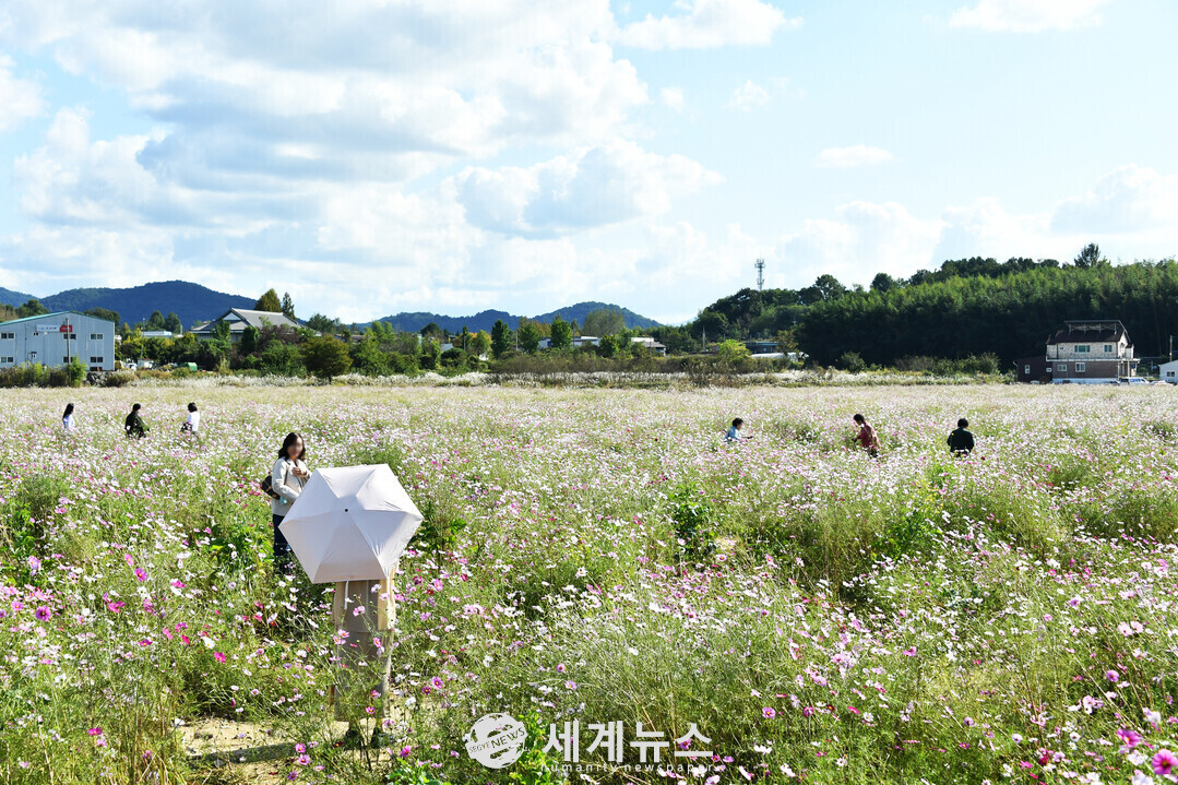 [세계뉴스 = 양경희 기자] 담양군 대나무박물관 인근 공터에 가을을 알리는 코스모스가 만개해, 고운 분홍빛 물결로 지나는 이들의 발걸음을 멈추게 하고 있다.