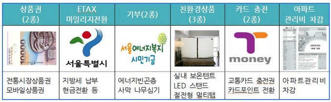 한편 ‘에코마일리지’는 생활 속 건물 에너지 절약을 위한 시민의 자율적 참여 프로그램이다. 2009년 9월 처음 시작해 2010년 32만 여 회원으로 출발, 매년 회원이 증가하면서 2013년 100만 명을 돌파했다. 각 가정과 건물에서 에너지 사용을 줄이고 절약한 에너지양에 따라 마일리지를 지급받아 지방세, 아파트 관리비를 납부하거나 전통시장 상품권, 교통카드 충전권 등으로 교환해 사용할 수 있다.