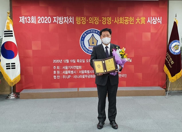 ‘지방자치 행정·의정·경영 사회공헌 대상’ 시상식은 지난 2008년부터 서울기자연합회 주관으로 매년 지방의원의 의정활동을 평가하고 점검해 시민들에게 올바른 기준을 제시하고, 건전한 정치문화를 만들자는 취지로 의정대상 수상자를 선정하고 있다.