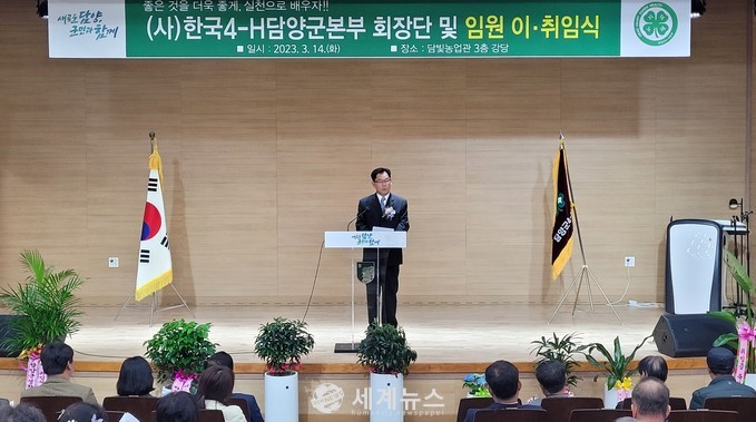 [세계뉴스 양경희 기자] 사단법인 한국4-H담양군본부 지난 3월 14일 농업기술센터 강당에서 회원 및 내‧외빈 100여명이 모인 가운데 7·8대 회장 이‧취임식을 진행했다.