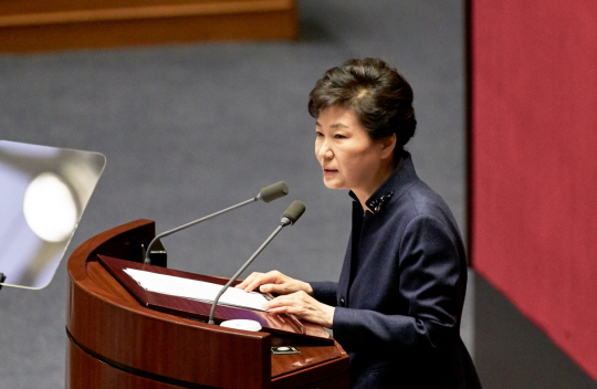 ▲ 벅근혜 대통령이 국회 본회장에서 '국정에 관한 연설'을 하고 있다. © 세계뉴스 |