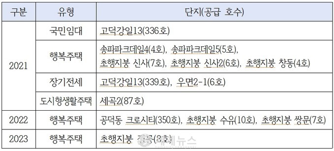 ▲ 최근 3년간 건설형 임대주택 공급내역. |