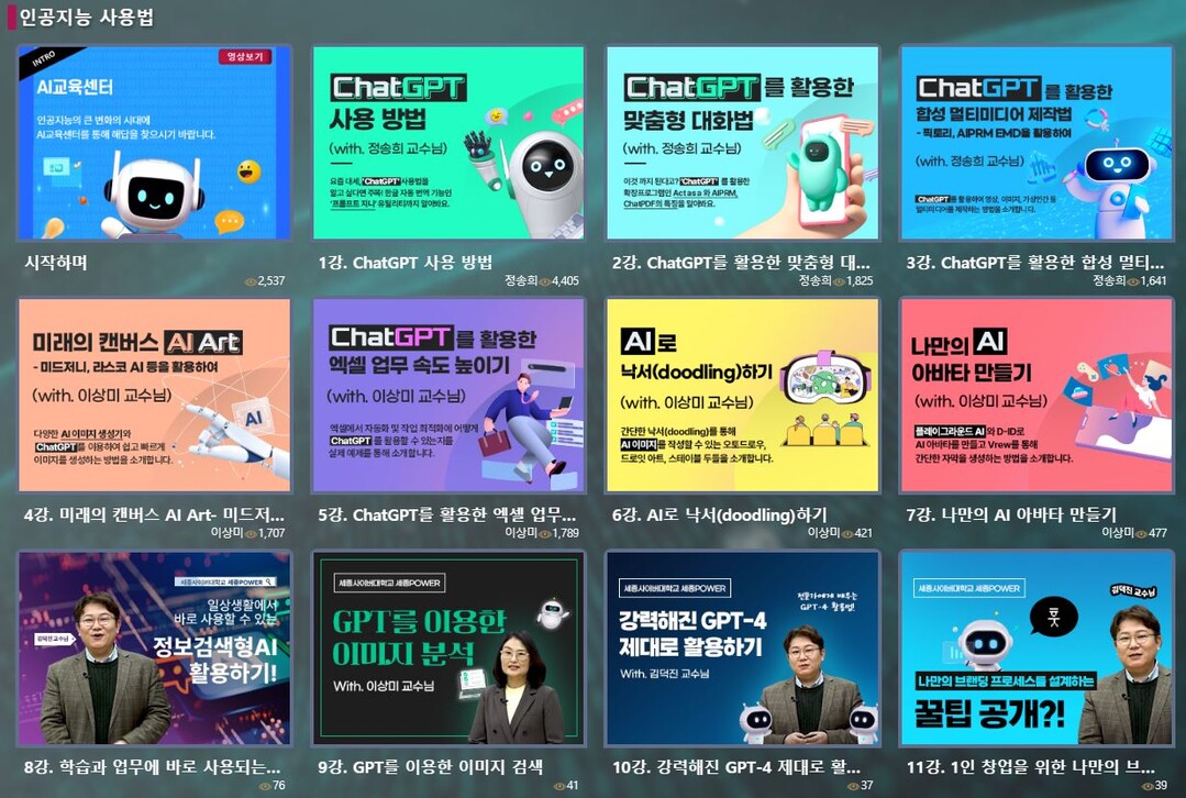 강좌는 Chat GPT 사용법, 맞춤형 대화법, AI를 통한 콘텐츠 제작 등 다양한 주제로 구성되어 있으며, 최신 강좌도 지속적으로 추가될 예정이다.