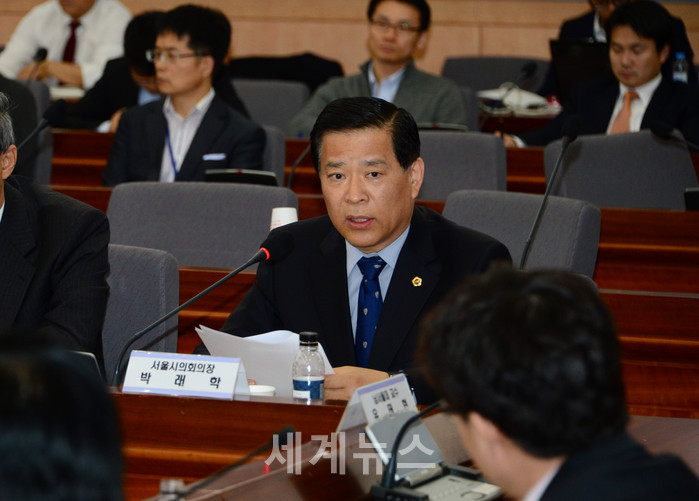 [세계뉴스 전승원 기자] 서울시의회 박래학 의장은 29일 정부 서울청사 별관에서 열린 ‘2015년 상반기 지방재정 전략회의’에 토론자로 참석해 국세와 지방세 배분구조 개선을 포함한 지방세제 개편을 촉구했다.