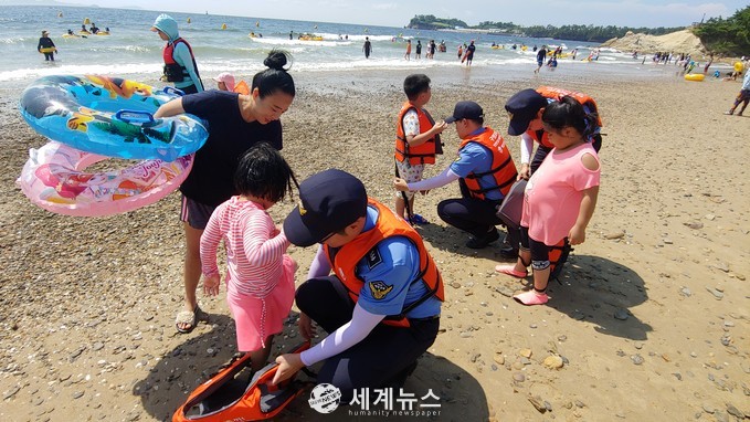 [세계뉴스] 한차수 기자 = 부안해양경찰서(서장 김동진)는 30일 여름철 물놀이 안전사고 예방과 해양안전문화 확산을 위한 ‘범국민 구명조끼 입기’ 캠페인을 부안군 격포 해수욕장에서 개최했다고 밝혔다.