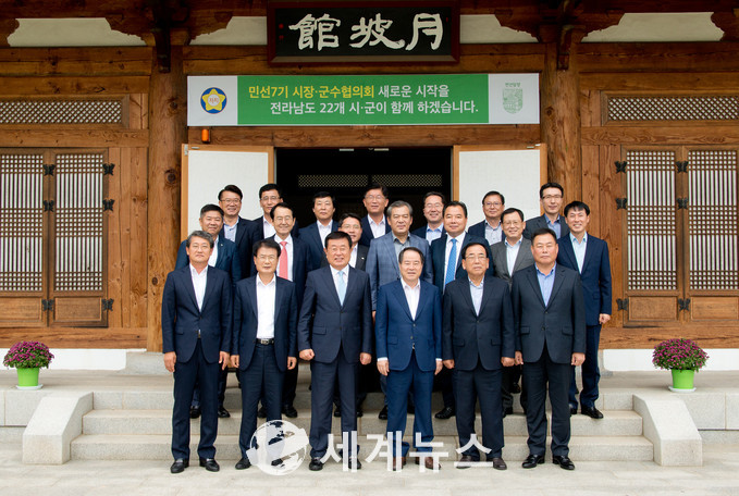 [세계뉴스] 한차수 기자 = 전남 시장.군수 협의회는 6일 담양 월파관에서 민선 7기 첫 번째 시장.군수협의회를 개최하고 전반기 협의회장으로 최형식 담양군수를 선출했다.