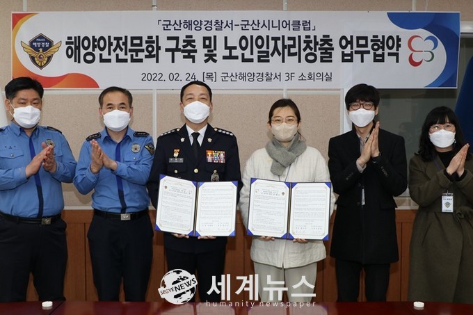 [세계뉴스 윤준필 기자] 군산해양경찰서는 24일 군산시니어클럽(관장 홍소연)과 노인 일자리 창출을 위한 업무 협약을 맺었다고 밝혔다.