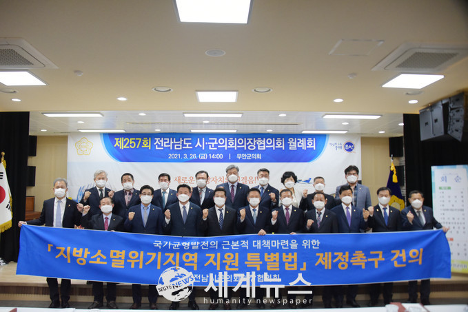 [세계뉴스 양경희 기자] 전남시군의회의장협의회(회장 김정오)는 26일 22개 시군의회 의장이 참석한 가운데 무안군 승달문화예술회관에서 월례회의를 개최했다.