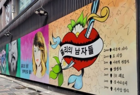 ▲ 서울 종로구 관철동 종로 12길 한 건물 벽면에 ‘쥴리의 남자들’ 벽화 등장. |
