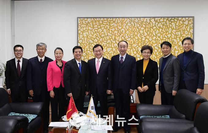 ▲ 지난 14일 서울시의회 박기열 부의장(가운데, 더불어민주당, 동작3)은 본관 부의장실에서 베이징시의회 쑨 쓰 차오우 부비서장과 수행일행들을 접견한 뒤, 기념촬영을 하고 있는모습. |