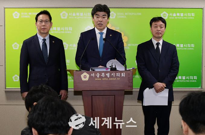 [세계뉴스] 조홍식 기자 = 김용석(바른미래당), 성중기(자유한국당), 박진형 의원(더불어민주당)은 10일 서울시의회 기자회견장에서 “박원순 시장 취임 후 서울시 산하기관에서 심각한 채용비리 의혹이 제기되고 있다”며 “서울시는 ‘시정적폐’를 청산하고 시민의 혈세를 지키기 위해서라도 서울시 감사위원회가 관련 기관을 수사기관에 고발할 것을 촉구한다”고 밝혔다.
