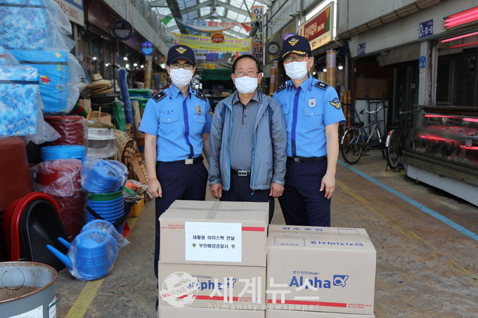 [세계뉴스 온라인뉴스부] 부안해양경찰서(서장 최경근)는 10일 제67주년 해양경찰의 날을 맞아 코로나19 여파로 간소한 기념행사와 함께 어려움에 처한 전통시장을 돕고자 가정에서 사용된 아이스팩을 수거해 지역 시장 상인회에 전달하는 행사를 하였다고 밝혔다.