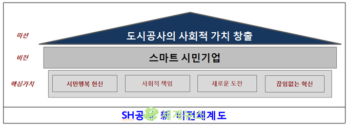 서울주택도시공사(SH공사, 사장 김세용)는 ‘도시공간의 사회적가치 창출을 위한’『스마트 시민기업』으로서 새로운 비전을 선포하며 서울시의 도시 공간에서 발생하는 문제를 적극적으로 해결하고 시민기업으로서 거듭날 것을 대내외에 공표했다.