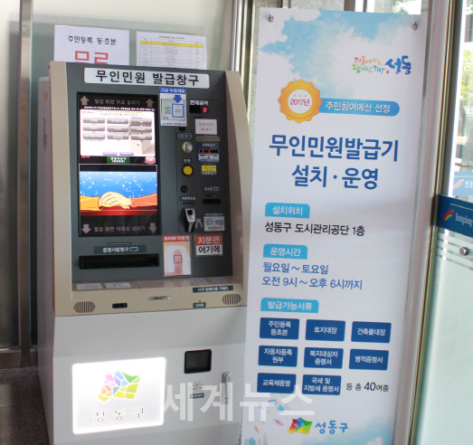 2017년 주민참여예산으로 선정된 이 사업은 행정기관을 방문하지 않고 민원서류 발급이 가능함으로써 구민편의를 증진하기 위해 성동구청(구청장 정원오)이 설치한 것이다.