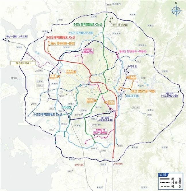 정부는 파주 운정에서 서울역과 삼성역을 가로질러 화성 동탄을 있는 GTX 'A노선'이 이번 달에 착공에 들어간다. 최근 예비타당성 조사를 통과한 'C노선'(양주-수원)은 내년 중 기본 계획에 착수한다.