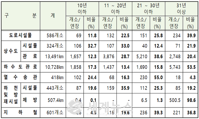▲ 서울시 주요 시설물별 경과연수현황 . |