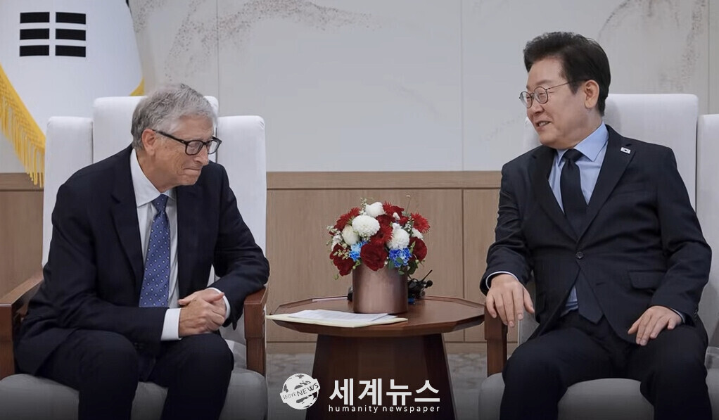 [세계뉴스 = 정서영 기자] 이재명 대통령이 21일 서울 용산 대통령실에서 방한 중인 빌 게이츠 빌앤드멜린다게이츠재단 이사장을 만나 글로벌 보건 협력, 인공지능(AI)의 미래, 소형모듈원자로(SMR) 등 다양한 주제를 논의했다.