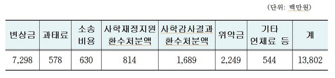 ▲ 서울시교육청, 2016년도 미수납액 현황 © 세계뉴스 |