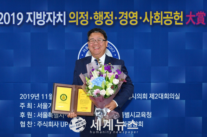 [세계뉴스 정서영 기자] 홍성룡 서울시의원(더불어민주당·송파3)이 지난 21일 서울특별시의회 의원회관 제2대회의실에서 열린 서울시기자연합회(회장 정상린)가 주관한 ‘2019 지방자치 의정 대상’을 수상하는 영예를 안았다.