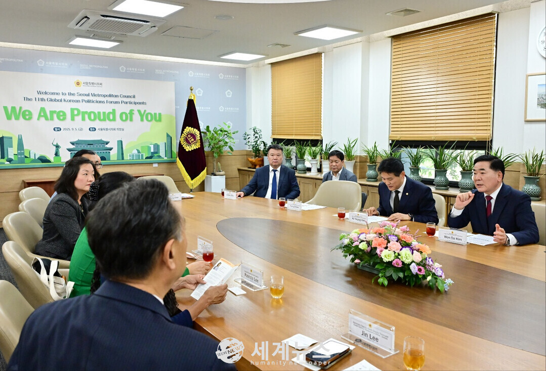 방문단은 서울시의회 본청에 도착해 본회의장을 방청하며 서울 지방의회의 의사 진행을 직접 체험했다. 이어 의장 접견실에서 열린 간담회는 김원태 의원과 미국 일리노이주 쿡카운티의 이진 명예부재무관이 사회를 맡아 각국 한인 정치인들의 의정 경험과 정책 사례를 공유하는 대화로 이어졌다.
