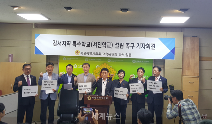 [세계뉴스] 전승원 기자 = 서울특별시의회 교육위원회(김생환 교육위원장)는 15일 서울시의회 본관1층 기자회견실에서 강서구 공진초 이적지에 설립 예정인 특수학교를 계획대로 설립할 것을 촉구하는 성명서를 발표했다.