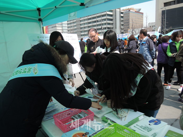 ▲ 온실가스 줄이기 실천 서약서를 쓰고 있는 시민들 © 세계뉴스 |