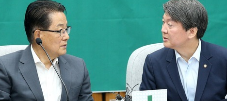 ▲ 안철수 대표(오른쪽)와 박지원 원내대표가 징계수위에 대해 이야기를 나누고 있다. © 세계뉴스 |
