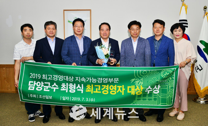 [세계뉴스] 한차수 기자 = 최형식 담양군수가 3일 JW메리어트 동대문스퀘어 서울호텔에서 열린 ‘조선일보 2019 최고 경영대상’ 시상식에서 지속가능경영 부문 대상을 수상했다.