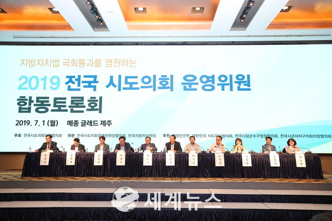 [세계뉴스] 전승원 기자 = 전국시도의회 운영위원들이 1일 제주도에서 지방자치법 전부개정안의 국회통과를 위해 합동토론회를 개최했다.