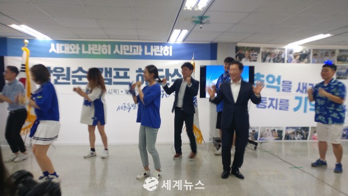 [세계뉴스] 전승원 기자 = 6.13전국지방선거에서 서울시장 3선에 성공한 박원순 서울시장이 안국동 선거캠프 해단식에 참석한 자리에서 댄스실력을 선보였다.