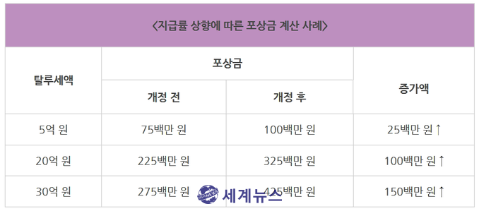 특히 올해는 탈세제보 포상금 한도액이 인상(30억원→40억원)되었고 지급률이 상향(5~15%→5~20%)으로 고급 탈세정보 증가가 예상된다.