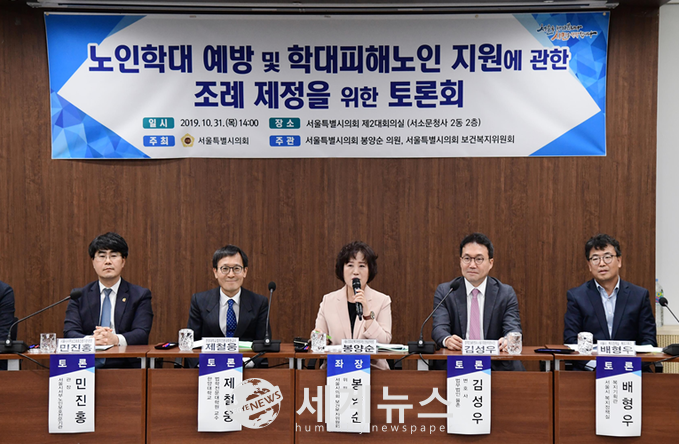 [세계뉴스 정서영 기자] 서울시의회 보건복지위원회 봉양순 의원(더불어민주당, 노원3)은 지난 31일 서울시의회 제2대회의실에서 “노인학대 예방 및 학대피해노인 지원에 관한 조례 제정을 위한 토론회”를 개최했다.