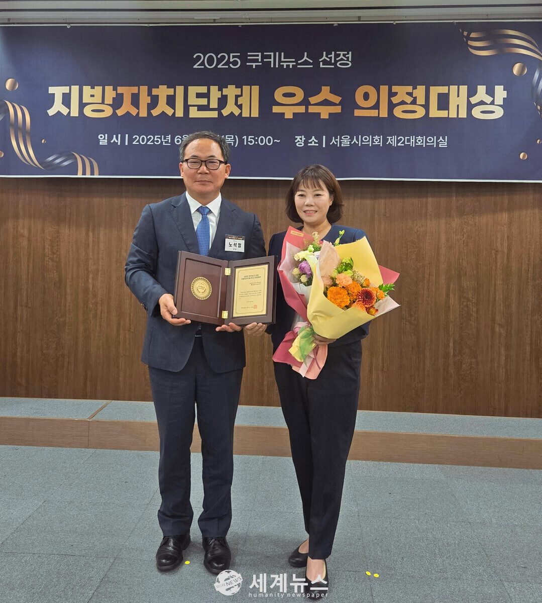 [세계뉴스 = 전승원 기자] 서울특별시의회 박성연 의원(국민의힘, 광진2)이 26일 '2025 쿠키뉴스 선정 지방자치단체 우수 의정대상 시상식'에서 광역의원 부문 의정대상을 수상하는 영예를 안았다.