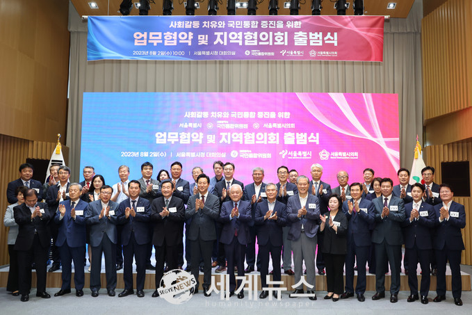 [세계뉴스 윤소라 기자] 김현기 서울특별시의회 의장은 ‘서울시의회-국민통합위원회-서울시 3자 업무협약’을 체결하고 서울시의회가 국민통합의 한 축의 역할을 담당해 갈등으로 점철된 ‘비정상의 과거’를 뛰어넘겠다고 밝혔다.