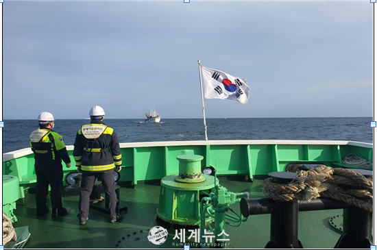 ▲ 조난선을 예인하는 국가업지도선 사진 |