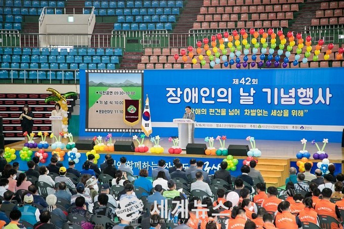 [세계뉴스 윤준필 기자] 군산시는 16일 군산 월명체육관에서 「장애의 편견을 넘어 차별 없는 세상을 위해」라는 슬로건으로 제42회 장애인의 날 기념행사를 개최했다.