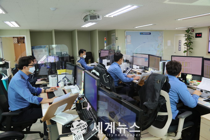 먼저, 해양경찰의 컨트롤 타워인 종합 상황실 요원의 감염 예방을 위해서 근무 환경을 개선하고 만일의 사태에 대비해 임시 상황실을 마련하였다.
