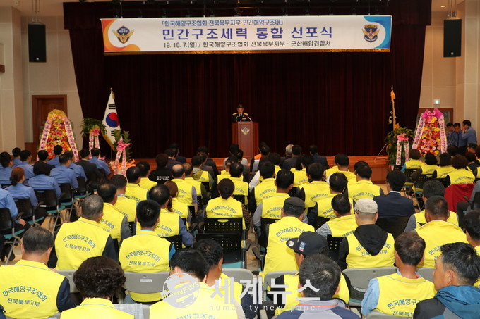 군산해양경찰서(서장 서정원)는 7일 오후 2시 경찰서 대강당에서 민간구조 세력의 일체감 조성과 비전 공유를 위한 민간구조세력 통합 선포식을 개최했다.