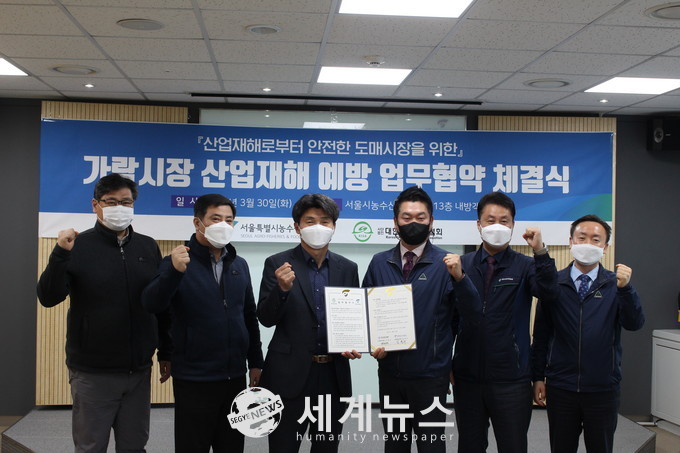 [세계뉴스 차성민 기자] 서울시농수산식품공사(사장 김경호)는 산업재해로부터 안전한 가락시장을 만들기 위해 안전보건 전문기관인 대한산업안전협회와 30일 업무협약을 체결했다.