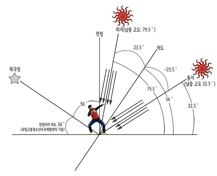 ▲ 하지에는 태양의 남중고도가 79.5˚에 낮을 가장 오랫동안 만끽할 수 있다. 반면 태양이 남중했을 때 그림자의 길이는 가장 짧아진다. © 세계뉴스 |