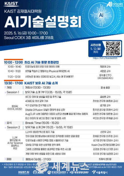 KAIST는 김재철AI대학원이 오는 16일 서울 코엑스에서 'AI 기술설명회 2025'를 개최한다고 밝혔다.