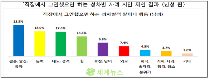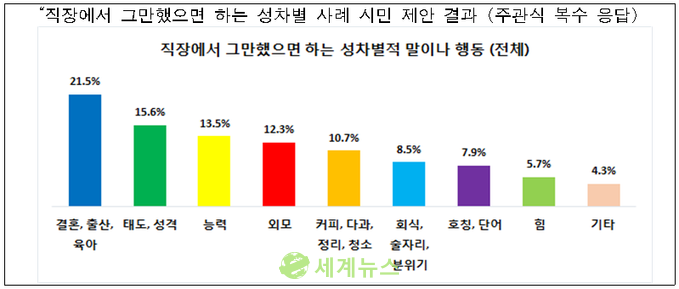 - 남녀 공통 : 여성과 남성이 꼽은 직장 성차별 사례